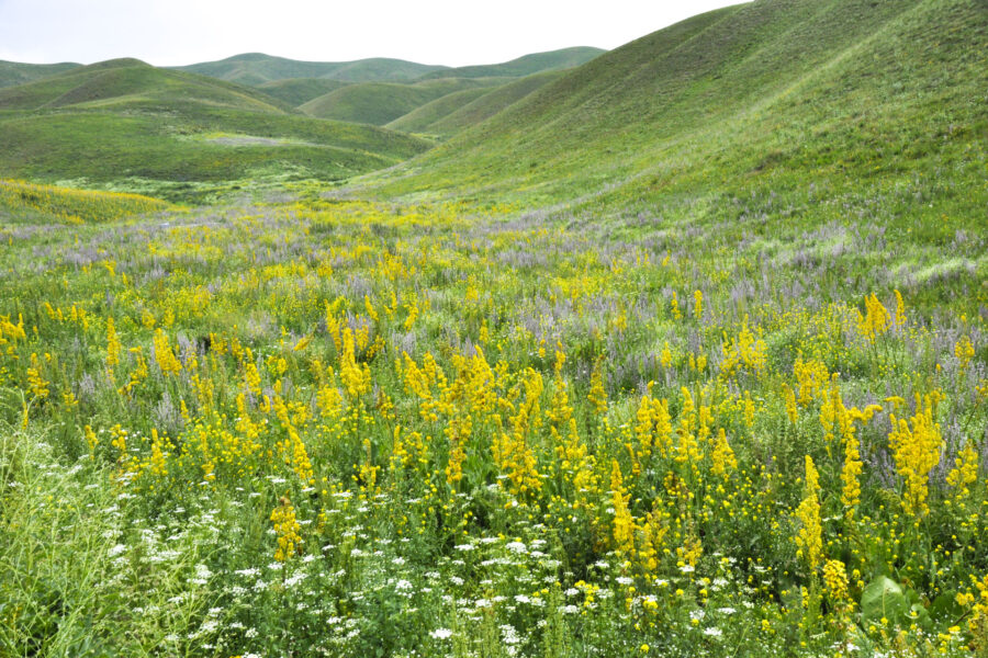 In Kirgisistan gibt es prächtige Wiesen und Wälder mit einem kaum vorstellbaren Blütenreichtum. Sie wachsen teils wild, teils sind die Pflanzengemeinschaften auf die Nutzung und Störung der Böden angewiesen, auch darauf ging Cassian Schmidt in seinem Vortrag am 11. Oktober 2023 ein. Vor allem die Wildobstwälder und hohen Steppenwiesen der feuchteren Regionen sind geradezu die Verkörperung von natürlicher Schönheit. Wo sie wachsen, ist das Klima von dem riesigen Yssykköl-See beeinflusst und daher nicht so wüstenhaft wie in anderen Regionen Zentralasiens.