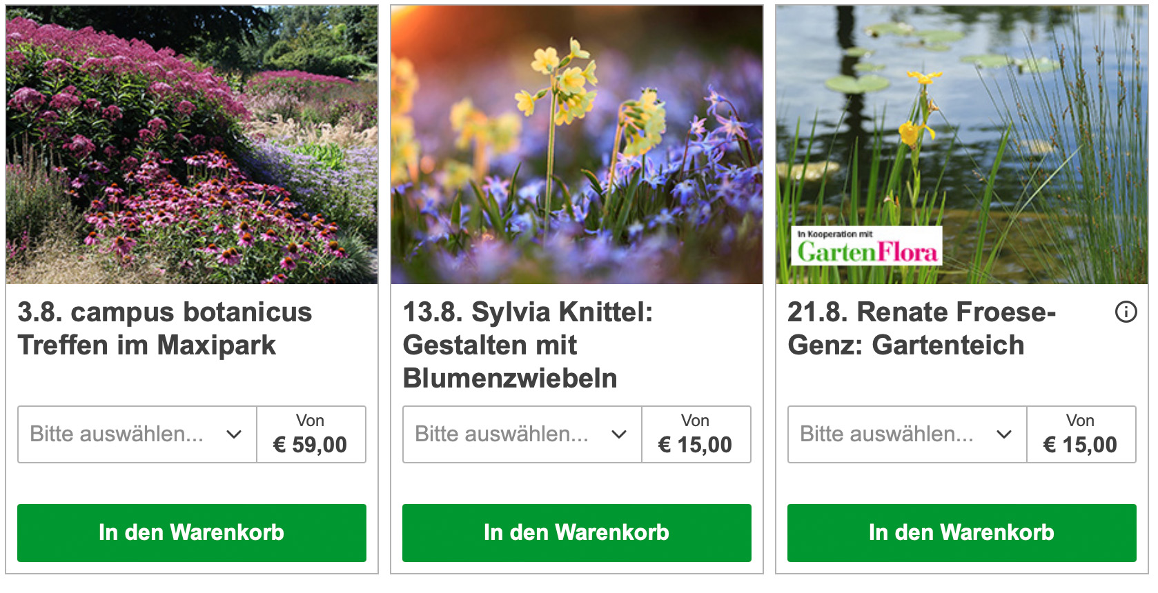 Unsere Vorträge rund um den Garten, Pflanzen und Botanik beginnen normalerweise um 20:00. Es gibt aber auch Ausnahmen, das schreiben wir dann dazu und Du kannst es auf dem Ticket erkennen.