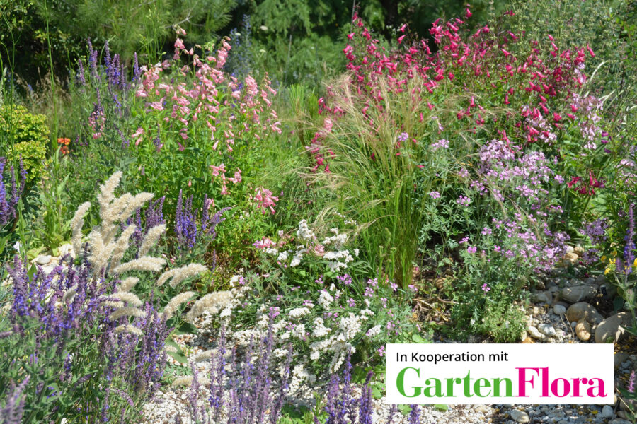 Kiesgärten genießen nicht den besten Ruf, seitdem sich triste Schottergärten immer weiter ausgebreitet haben. Dabei besticht ein naturnaher Kiesgarten mit einer unglaublichen Pflanzenvielfalt. Für den Kiesgarten sind besonders sonnenliebende Pflanzen geeignet, die nur wenig Wasser brauchen. Ein naturnahes Kiesbeet hat an der Oberfläche eine mineralische Mulchschicht, darunter ist der Gartenboden mit Kies und Sand vermischt. Der Anteil an Erde sollte nicht mehr als 20 Prozent betragen. Zu den Pflanzen, die in diesem Substrat bestens gedeihen, gehören:- Stauden wie Salbei oder Katzenminze