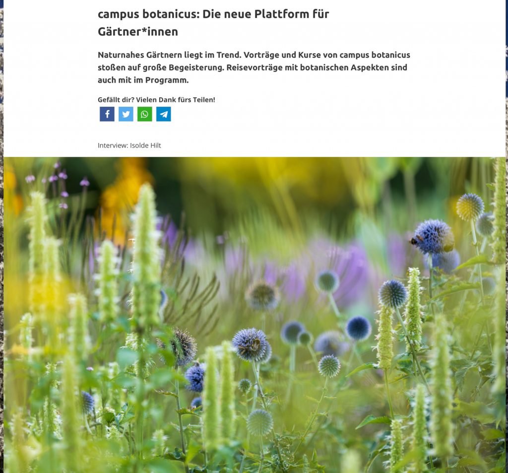 Petra Pelz, eine unserer Unterstützerinnen der ersten Stunde, gratulierte uns zum 1. Geburtstag 2021 mit einem schönen Blogbeitrag unter https://petra-pelz.com/happy-birthday-campus-botanicus/. Hier ein kleiner Ausschnitt. Danke Petra!